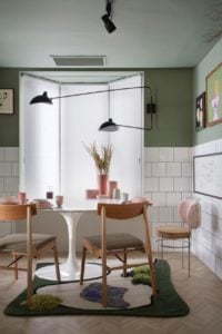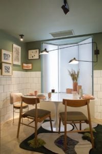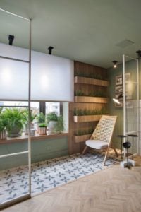 A arquitetura é totalmente moderna e aconchegante, sendo útil e ao mesmo tempo bela. Utilizando a cor “Mint” da Isabela Capeto para a Dell Anno. A cor do ano, como diria a mídia internacional milanesa, essa será a cor carro chefe, sendo acompanhada do branco, preto, cinza e rose.